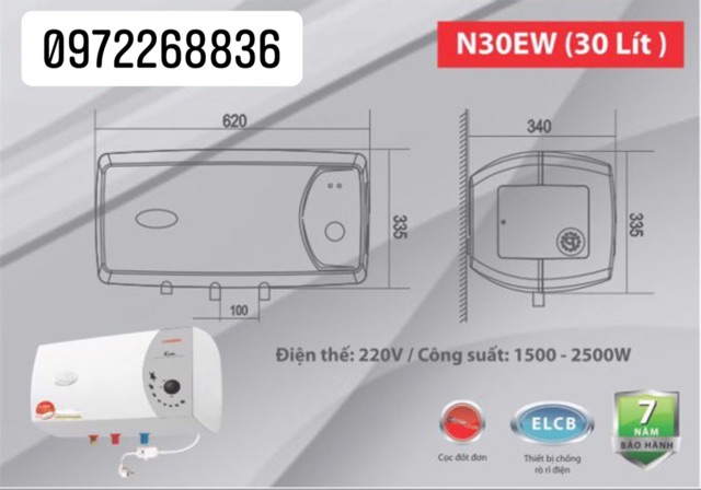 - Bảo hành: Bảo hành ruột bình 7 năm