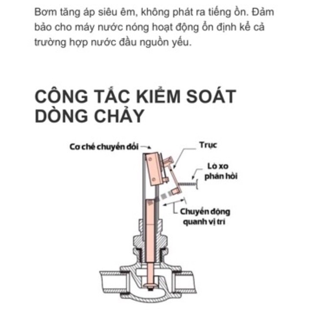 Kiểm soát dòng chảy của nước, đảm bảo lượng nước đều và liên tục trong quá trình sử dụng. Chỉ một thao tác mở-tắt công tắc, người sử dụng có thể dễ dàng điều chỉnh mở-tắt hoạt động của máy nóng lạnh trực tiếp (có dòng nước chảy qua, máy nóng lạnh trực tiếp mới hoạt động và ngược lại)