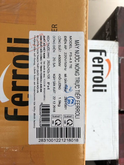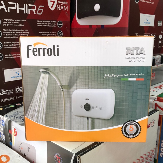 Giới thiệu Bình nước nóng trực tiếp Ferroli Rita FS-4.5 TE (Chống Giật) - Kèm vòi hoa sen
