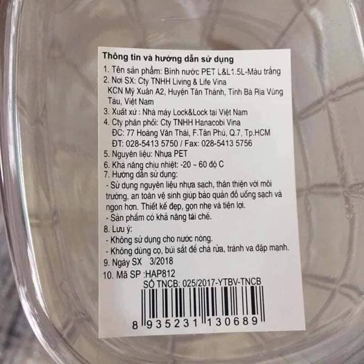 🌺Xuất xứ : Nhà máy lock & lock Việt Nam