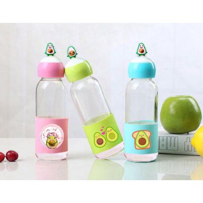 Bình nước quả bơ lá cây 400ml BNCI9 thuỷ tinh bình nước avocado cute chai nước dễ thương