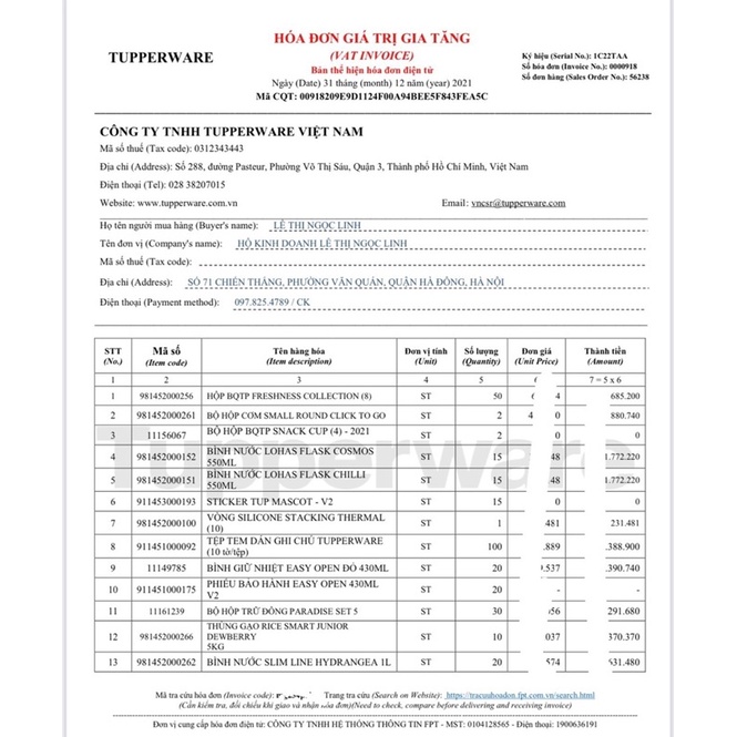Giới thiệu Bình nước Slim line 1L Tupperware Bảo hành trọn đời