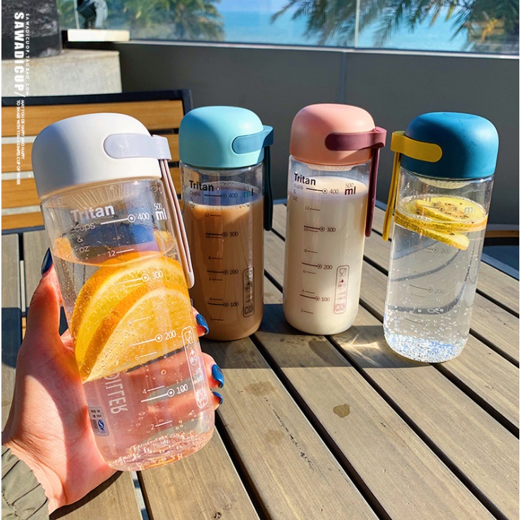 Nhà cửa & Đời sống > Bộ đồ bàn ăn > Bình nước & phụ kiện || Bình nước thể thao 500ml có thanh đo dung tích, có dây quai kèm theoCòn hàng