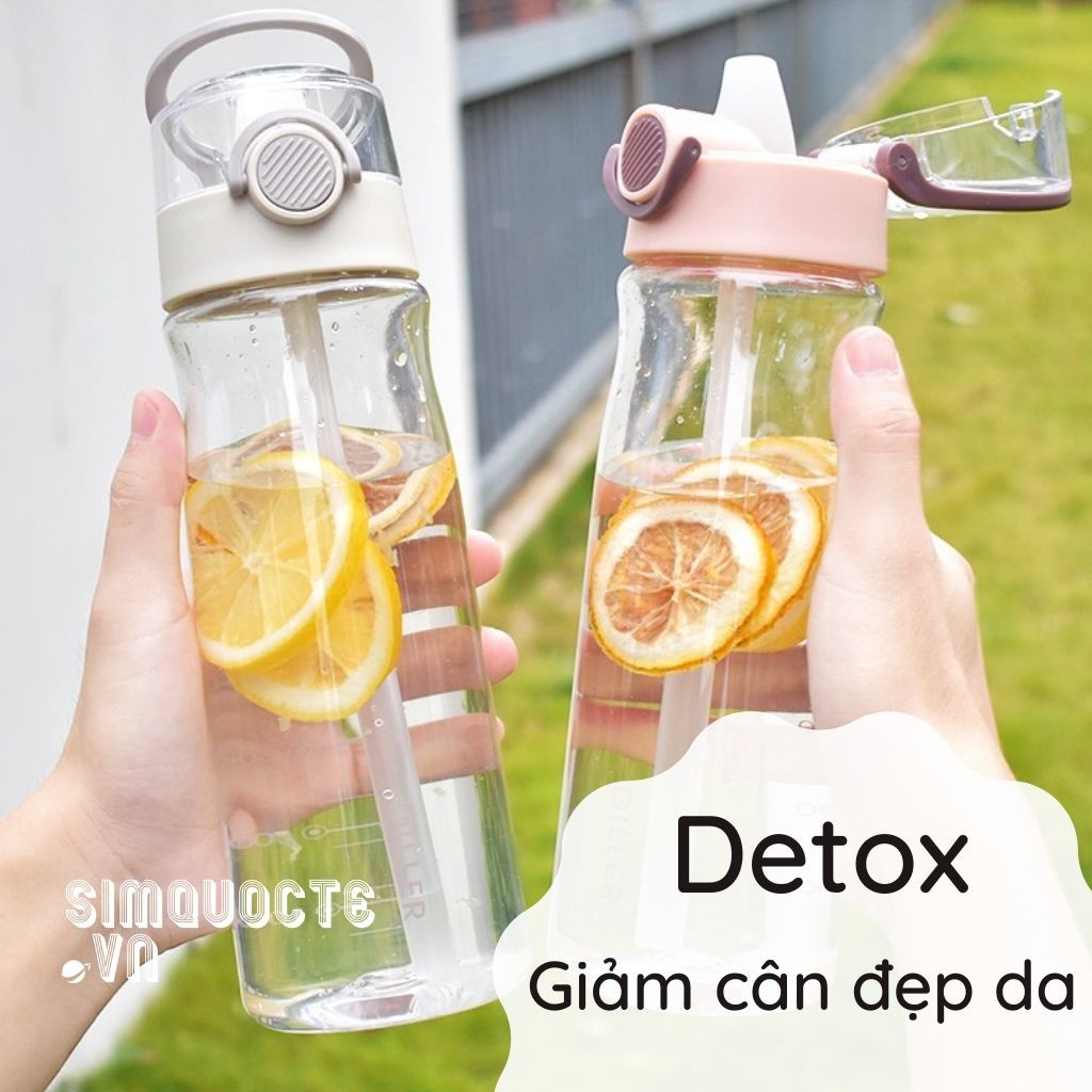 Bình nước thể thao detox kèm ống hút tháo rời 840ml BPA-free