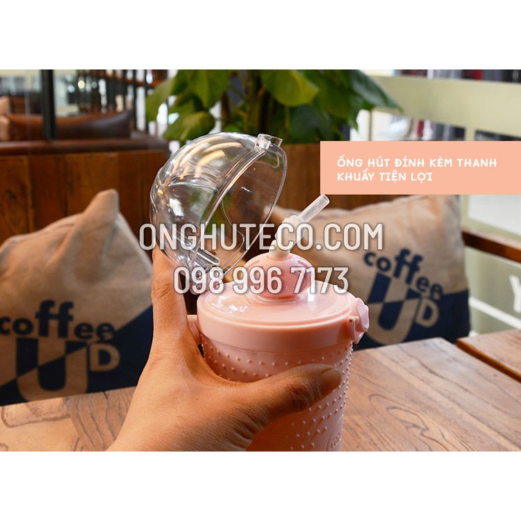 🌟Ống hút ẩn trong thanh khuấy thẩm mỹ với miệng ống hút bằng silicone mềm không hại răng.