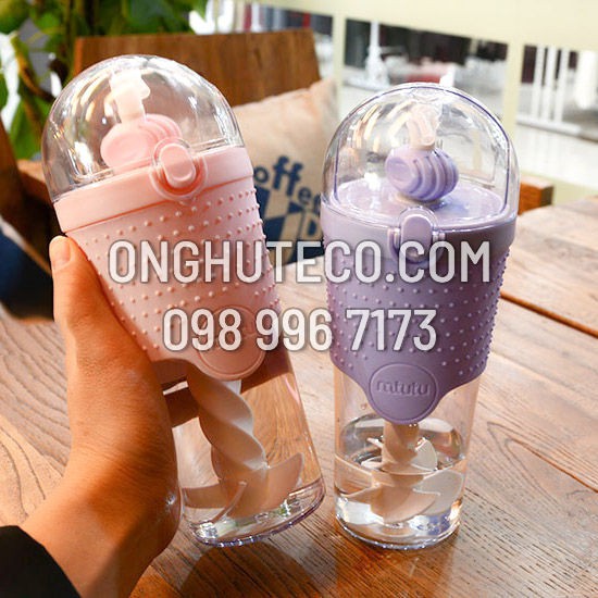 🌸🌸🌸Bình Nước Thể Thao Kèm Thanh Khuấy Sáng Tạo & Ống Hút Màu Trơn🌸🌸🌸--------------------------------------