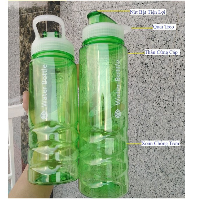 Miệng bình có gắn quai đeo tiện dụng, bạn có thể móc vào tay hoặc dụng cụ nào đó để tránh rơi khi đi tập thể thao, dã ngoại, pinic...