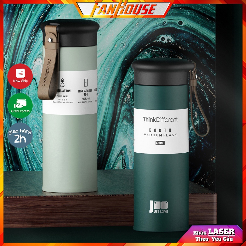 Nhà cửa & Đời sống > Bộ đồ bàn ăn > Bình nước & phụ kiện || Bình nước Think Love giữ nhiệt 12h Fan House ly nước cao cấp chính hãng 450ml chất liệu inox 304 móc treo bằng da thậtCòn hàng