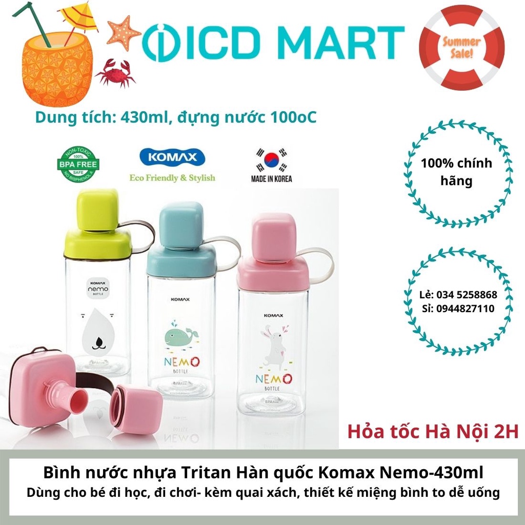 Giới thiệu Bình nước thời trang trẻ em 3 màu Hàn Quốc KOMAX 430ml chất liệu Tritan HÀNG NHẬP KHẨU