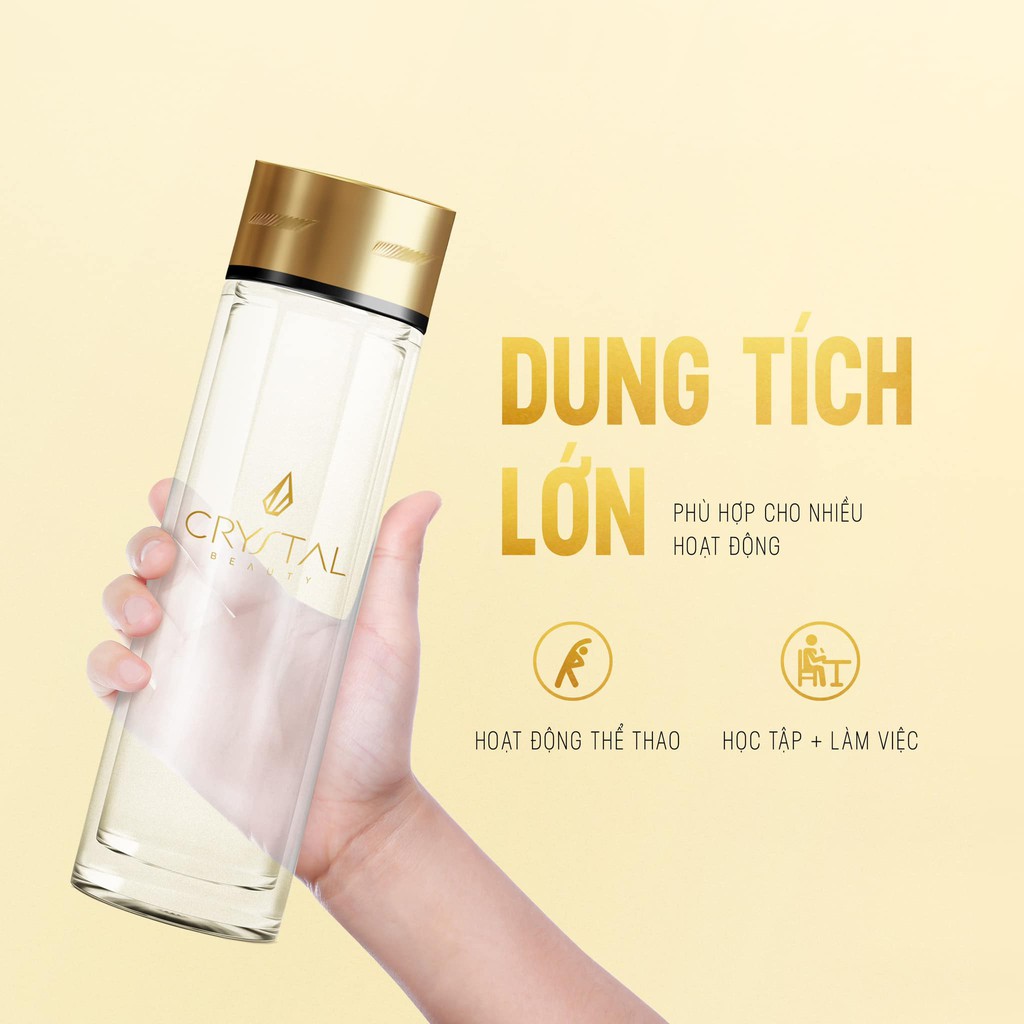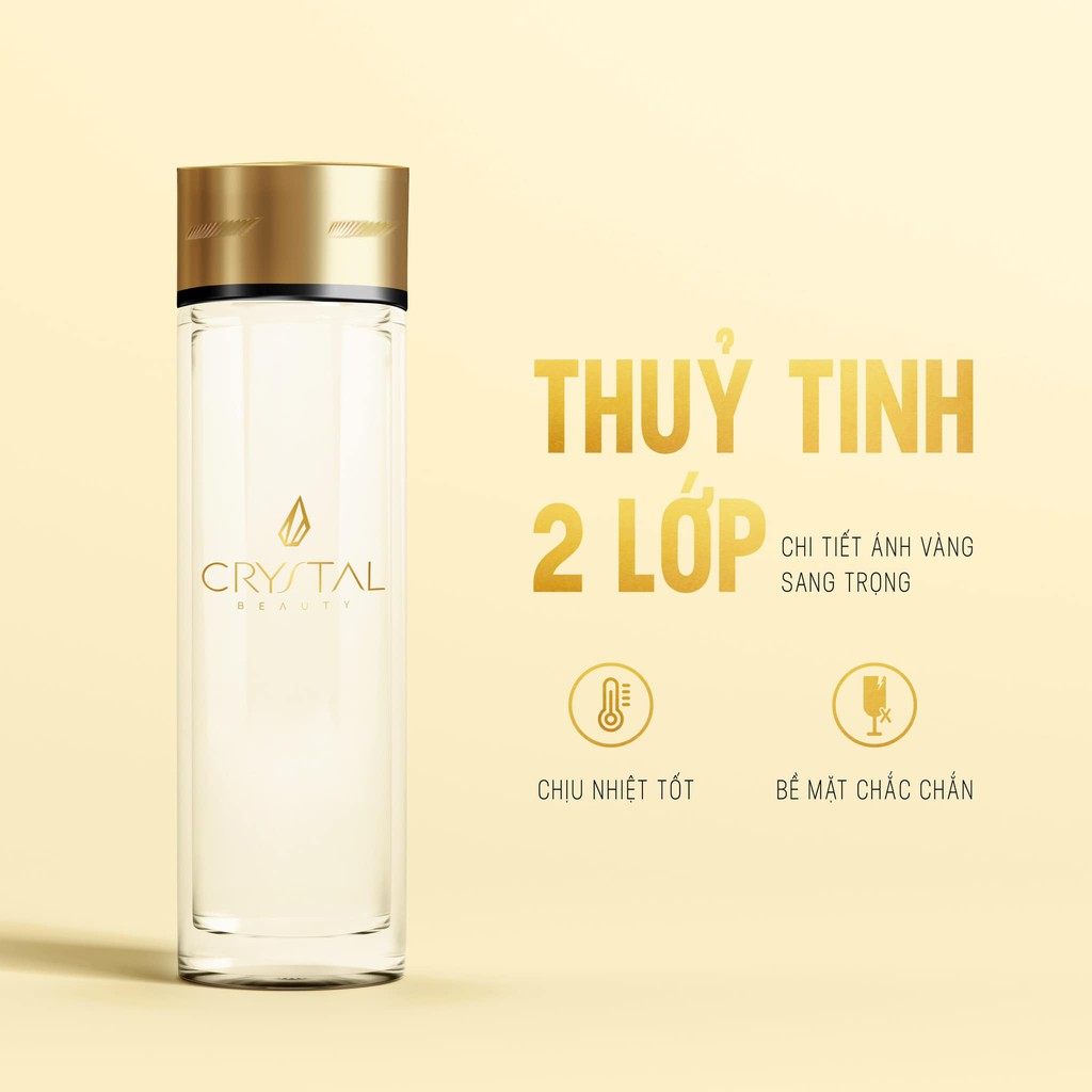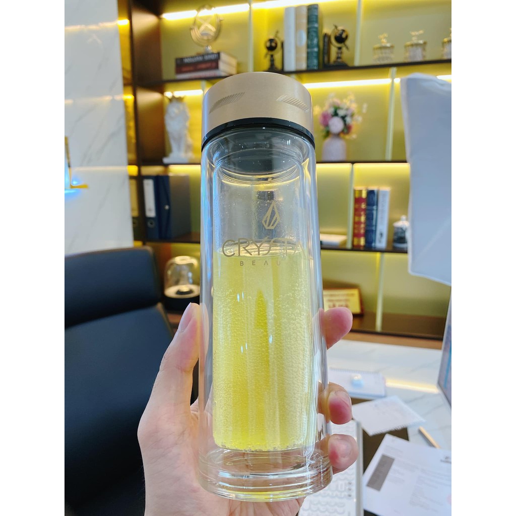 Bình nước thủy tinh 2 lớp thương hiệu Crystal Beauty đựng nước, trà, cà phê