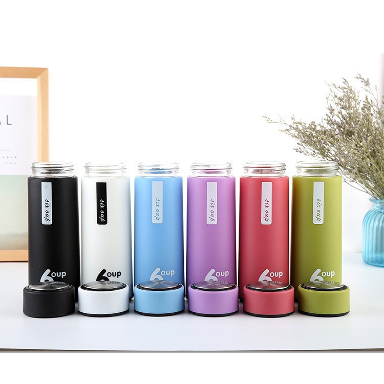 Bình nước thủy tinh 450ml có bọc nhựa chống nóng, chống trơn trượt, an toàn và hiệu quả tuyệt đối