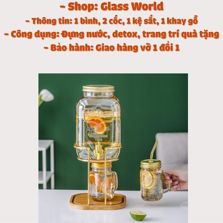Bộ bình nước thủy tinh 4L kệ sắt kèm cốc chịu nhiệt 🔥Cao Cấp🔥📷Bình thuỷ tinh với chất liệu cao cấp chịu nhiệt độ cao ánh vàng