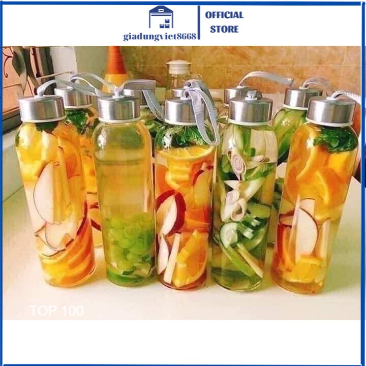 Bình nước thuỷ tinh 500ml trơn có dây xách-Bình đựng nước thủy tinh có nắp nhựa chống xốc nước- Bình đựng nước thuỷ tinh trong suốt .