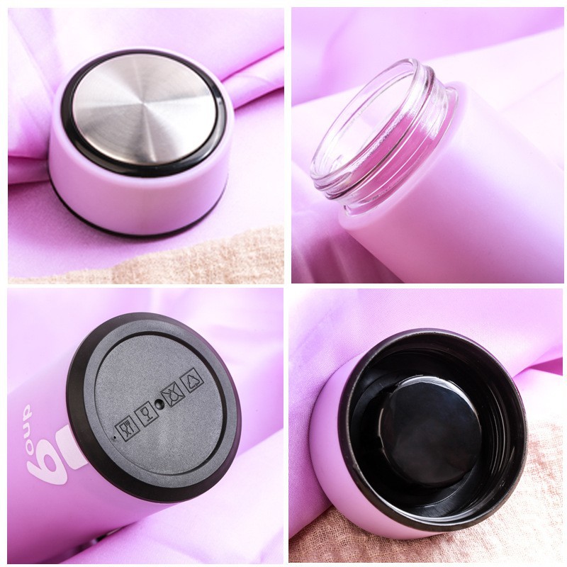 Bình nước thủy tinh 6oup - Bình nước thủy tinh 2 lớp giữ nhiệt nhiều màu sắc tiện lợi