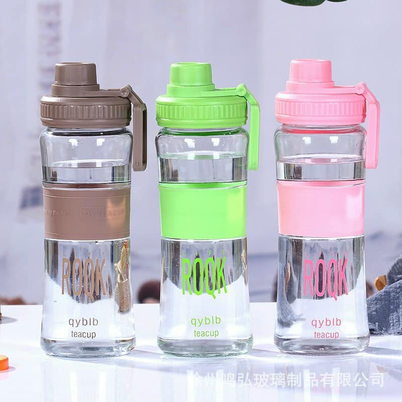 Nhà cửa & Đời sống > Bộ đồ bàn ăn > Bình nước & phụ kiện || Bình nước thủy tinh 750ml có đệm si.licon miệng bình to, 2 nắp xoáy có tay cầm tiện dụng-giadungsieureCòn hàng