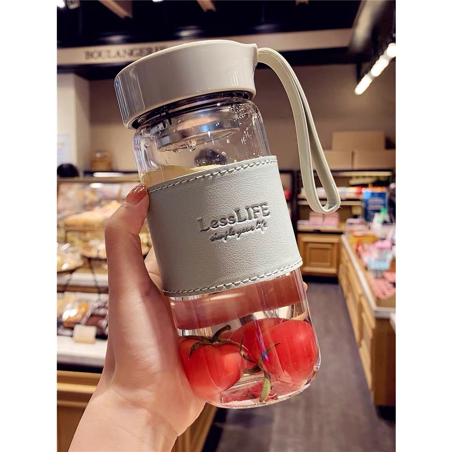 Nhà cửa & Đời sống > Bộ đồ bàn ăn > Bình nước & phụ kiện || Bình nước thuỷ tinh, bình thuỷ tinh đựng nước chịu nhiệt 480ml có lõi lọc và dây xáchCòn hàng