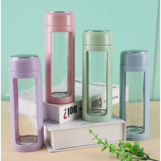 Giới thiệu Bình nước thủy tinh bọc nhựa pastel BN31 ba anh em gấu bare bear bình nước hoạt hình thuỷ tinh 500ml