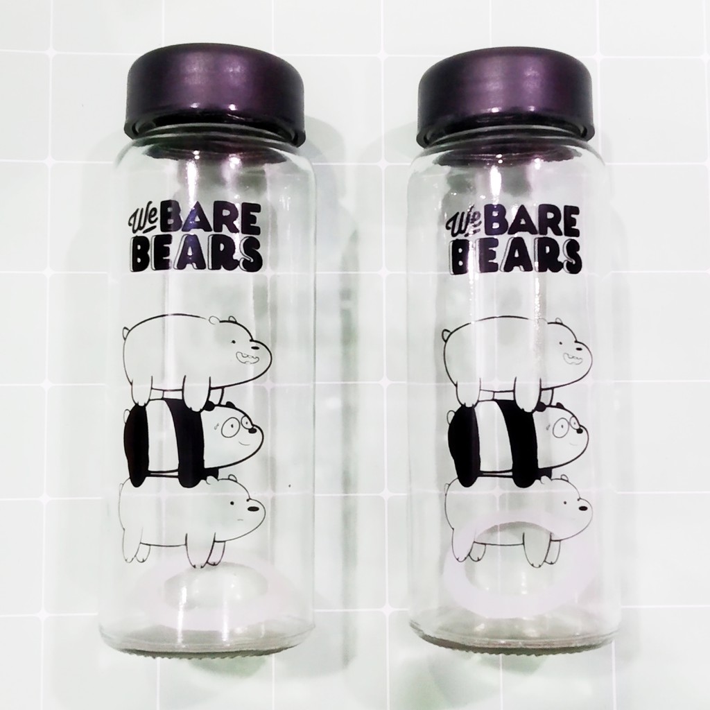 Bình nước thủy tinh bọc nhựa pastel BN31 ba anh em gấu bare bear bình nước hoạt hình thuỷ tinh 500ml