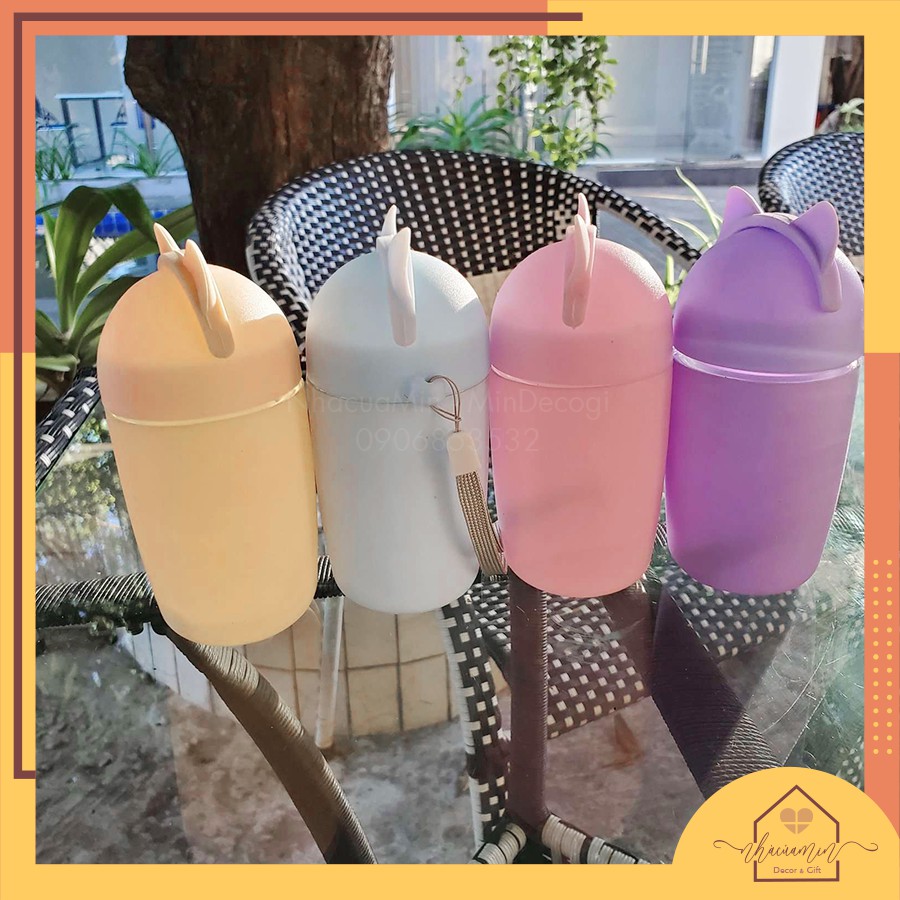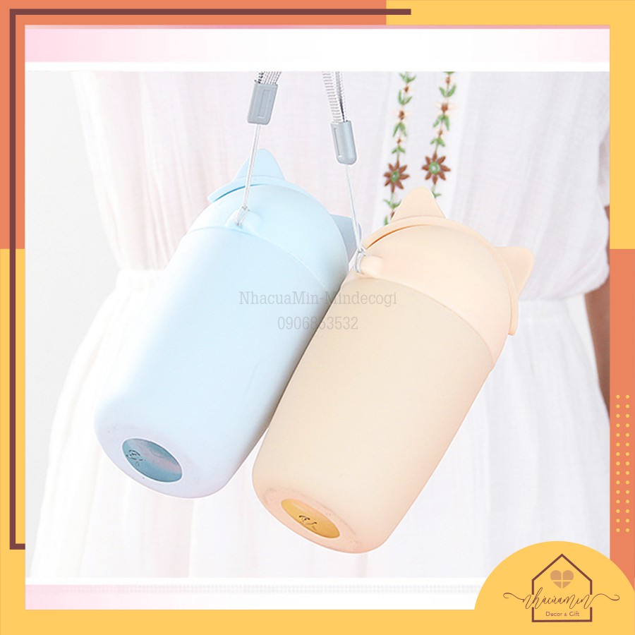 Bình nước thuỷ tinh bọc silicone tai mèo nhỏ nhắn đáng yêu