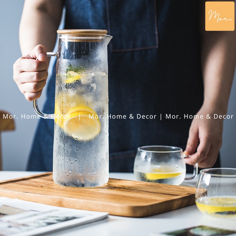 𝗕𝗶̀𝗻𝗵 𝗻𝘂̛𝗼̛́𝗰 𝘁𝗵𝘂̉𝘆 𝘁𝗶𝗻𝗵📍 Chất liệu thủy tinh chịu nhiệt cao cấp từ -20 - 150 độ C và chống sốc nhiệt tốt. Nắp bình bằng gỗ tre có gioăng cao su giúp nắp bình không bị rơi khi rót nước.