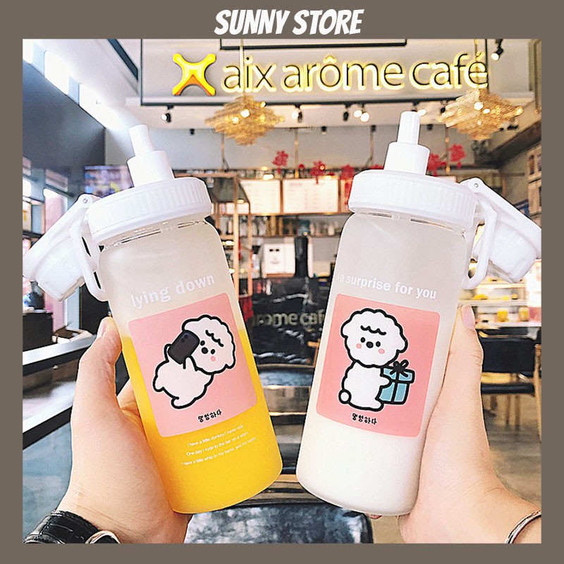 Bình nước thủy tinh có ống hút phong cách dễ thương tiện lợi SUNNYSTORE
