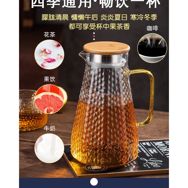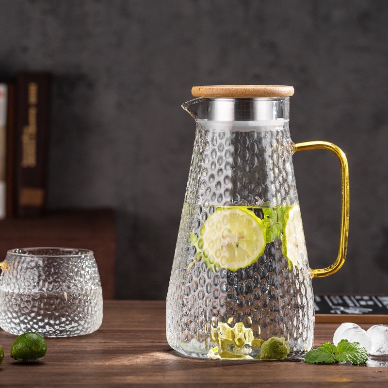Bình nước thuỷ tinh có dung tích 1600mlThiết kế hình lục lăng đẹp mắt, tay cầm viền vàng dễ cầm