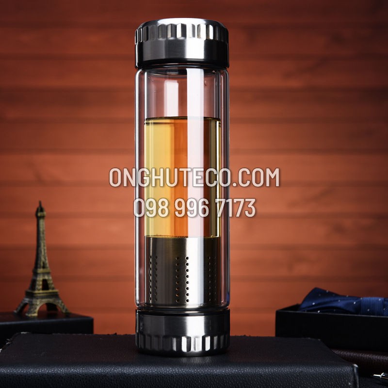 Bình Nước Thủy Tinh High Borosilicate Cách Nhiệt 2 Lớp Cao Cấp