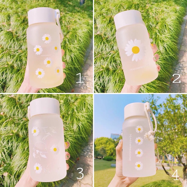 Bình nước hoa cúc siuu xinh xắn, chất thuỷ tinh đựng nước an toàn với sức khoẻ 🥰🥰– Dung tích 500ml có cả quai xách đi làm đi học đi tập đều tiện hết nhaa 💵 Price : #80k