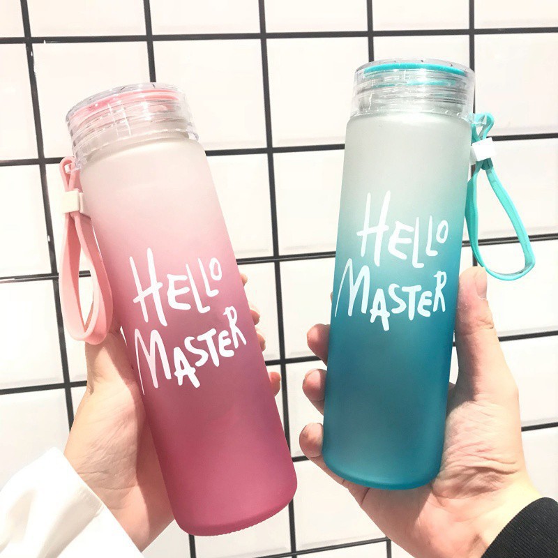 Bình Nước Thủy Tinh In Chữ Hello Master 400ML có dây xách-Bình Nước Thủy Tinh Hello Master (Màu ngẫu nhiên)