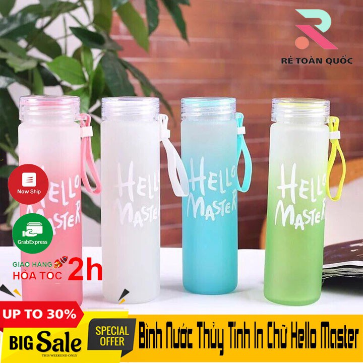 Nhà cửa & Đời sống > Bộ đồ bàn ăn > Bình nước & phụ kiện || Bình Nước Thủy Tinh In Chữ Hello Master 400ML có dây xách-Bình Nước Thủy Tinh Hello Master (Màu ngẫu nhiên)Còn hàng