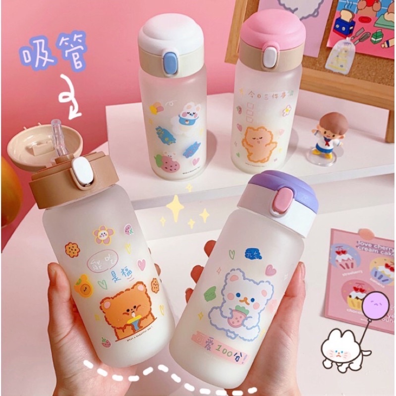 Bình nước thuỷ tinh kèm ống hút - Bình nước gấu