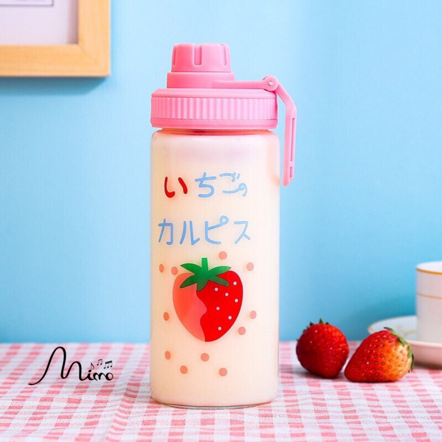 Bình Nước Thủy Tinh Kèm Quai,Không Quai Họa Tiết Dễ Thương Dung Tích 500ml