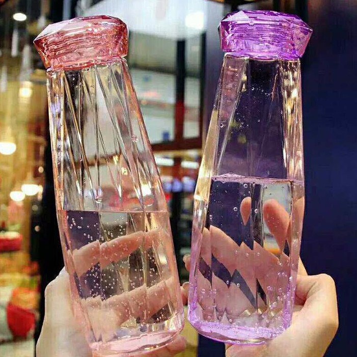 Bình nước thủy tinh kim cương 500ml nhiều màu sắc