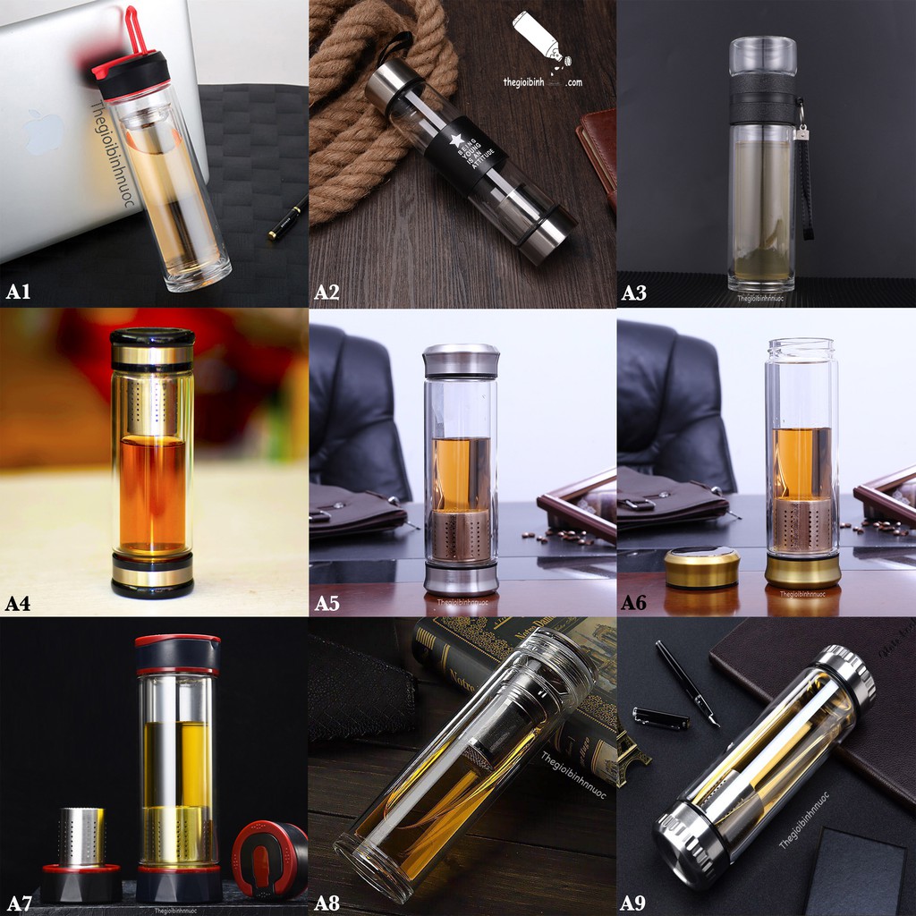 Tuyển Tập Các Loại Bình Nước Thủy Tinh Lọc Trà Detox Water Pong DangBình A1