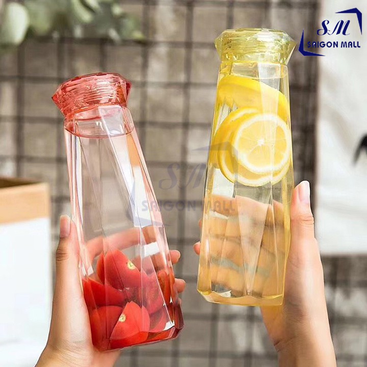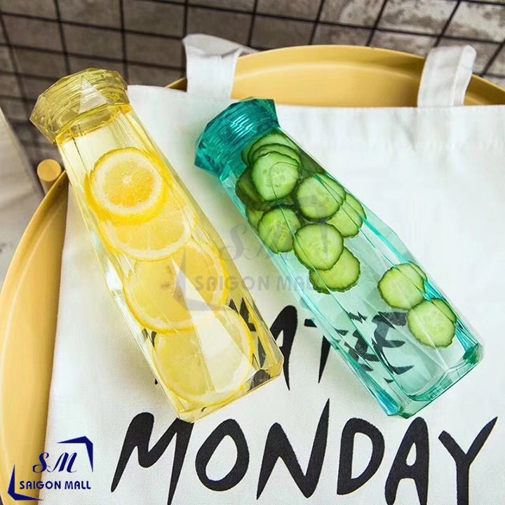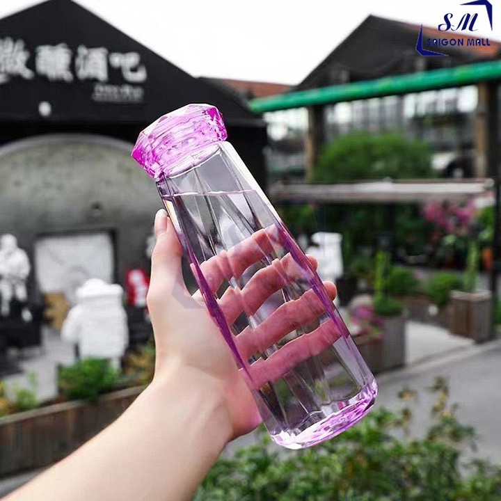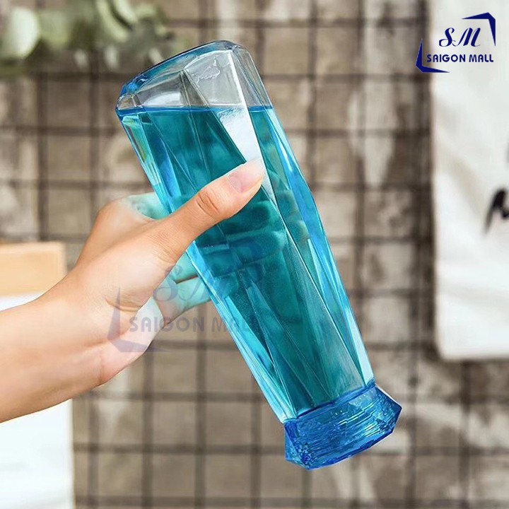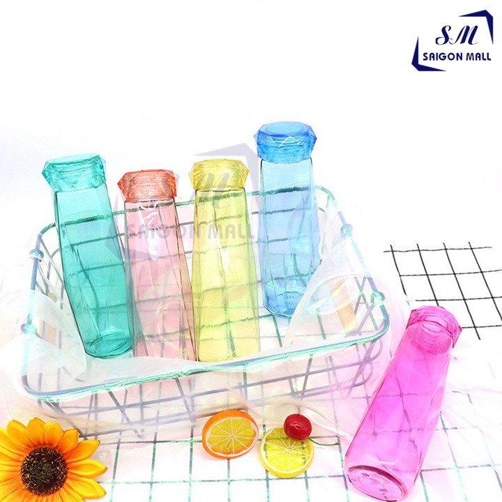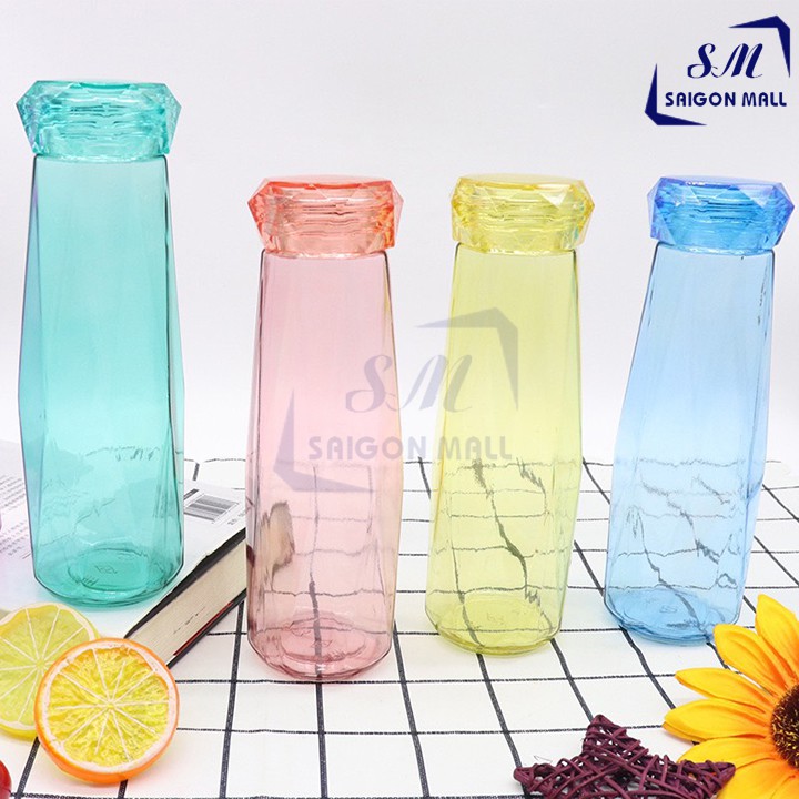 Bình nước thủy tinh màu dáng kim cương cao cấp 430ml