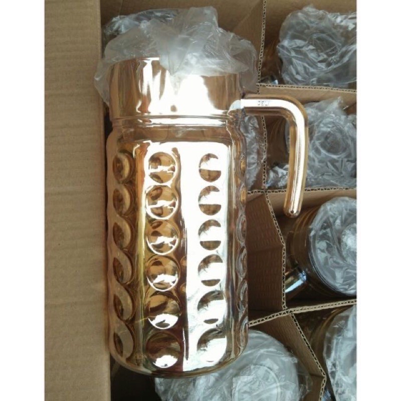 Bình nước thuỷ tinh màu vàng hàng dày có hộp dung tích 1,8l