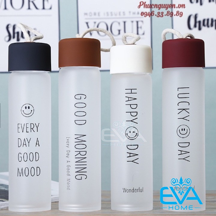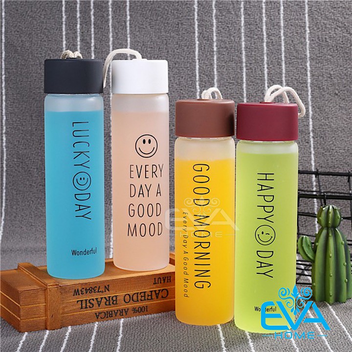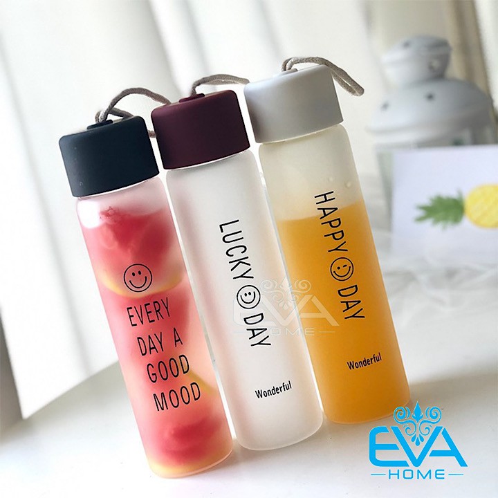 Bình Nước Thuỷ Tinh Mờ Happy Day 400 Ml