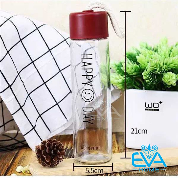 ***Mô tả sản phẩm : Chai thủy tinh mờ dây xách Happy day