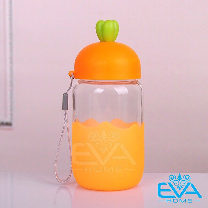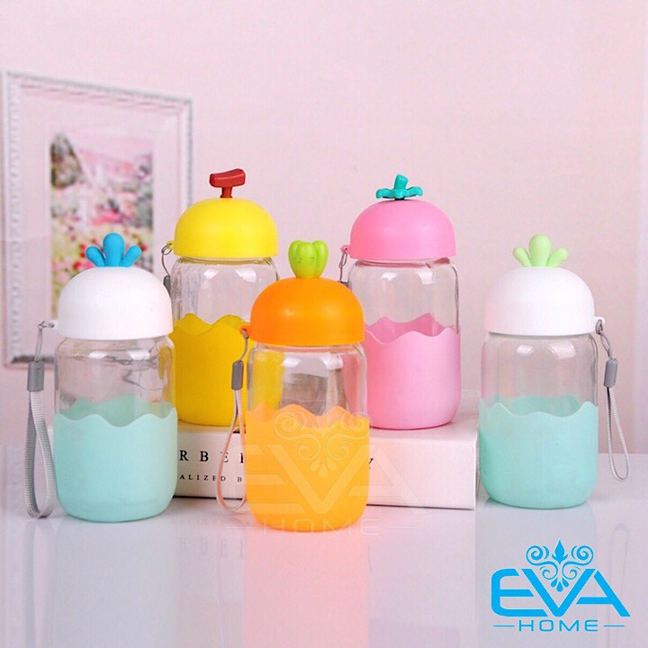 Bình Nước Thủy Tinh Nắp Củ Cải Thân Bọc Silicone 300mlMã sản phẩm : 0018001206