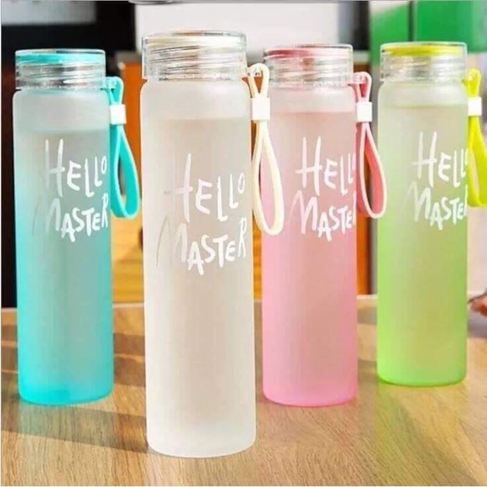 Bình nước thủy tinh nhiều màu hello master 450ml