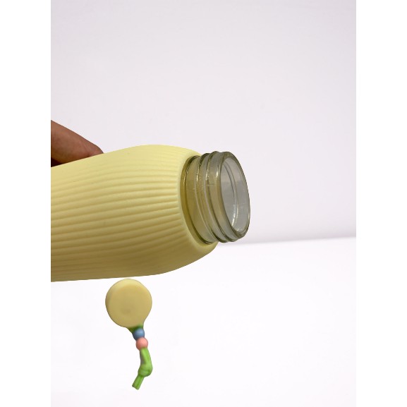 - Bình nước có nắp đậy vặn xoáy bằng nhựa silicon có ron kín hơi 100%, trong là thủy tinh trong suốt được bọc bởi lớp vỏ bọc bình bằng silicon, màu rất dễ thương, không chứa các chất độc hại cho sức khỏe.
