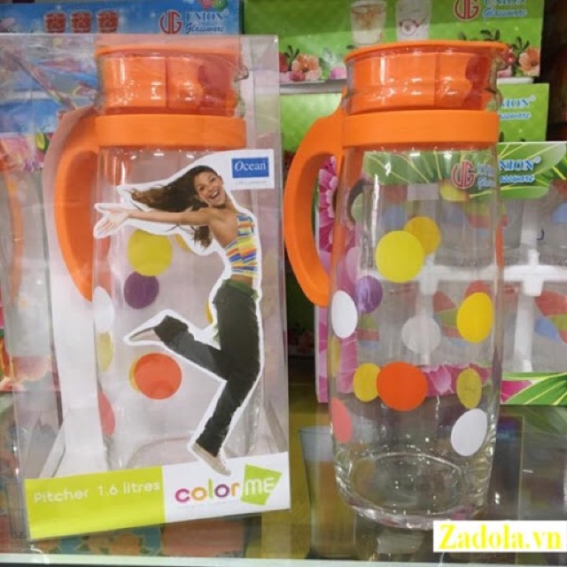 BÌNH NƯỚC THỦY TINH OCEAN 1,6 LÍT HÀNG THÁI LAN có khả năng chịu nhiệt cao ngay cả với nước vừa đun sôi xong nếu bạn có đổ vào bình thì cũng đừng lo chuyện bị nứt.Màu sắc: vằn kẻ nhiều màu.chấm bi,lúa,kẻ