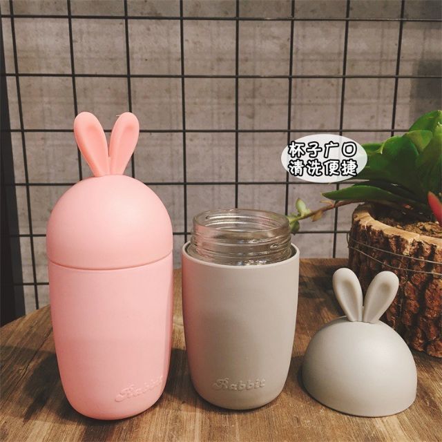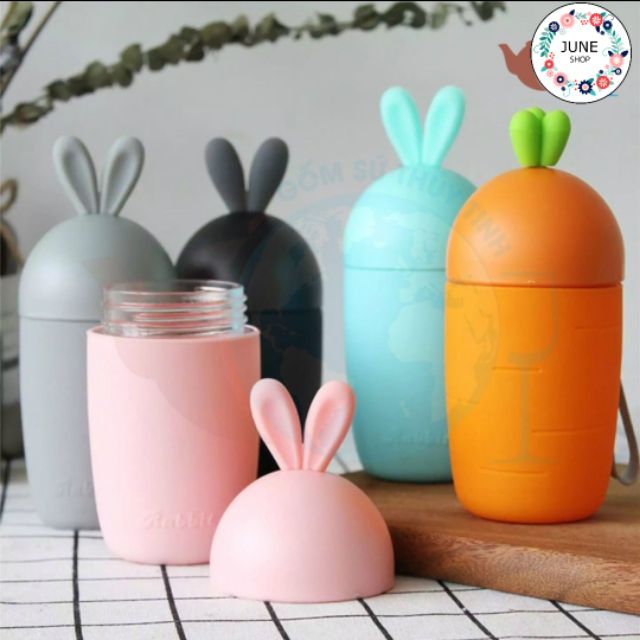 Nhà cửa & Đời sống > Bộ đồ bàn ăn > Bình nước & phụ kiện || Bình nước thủy tinh thỏ và cà rốt có vỏ bọc silicon 300mlCòn hàng
