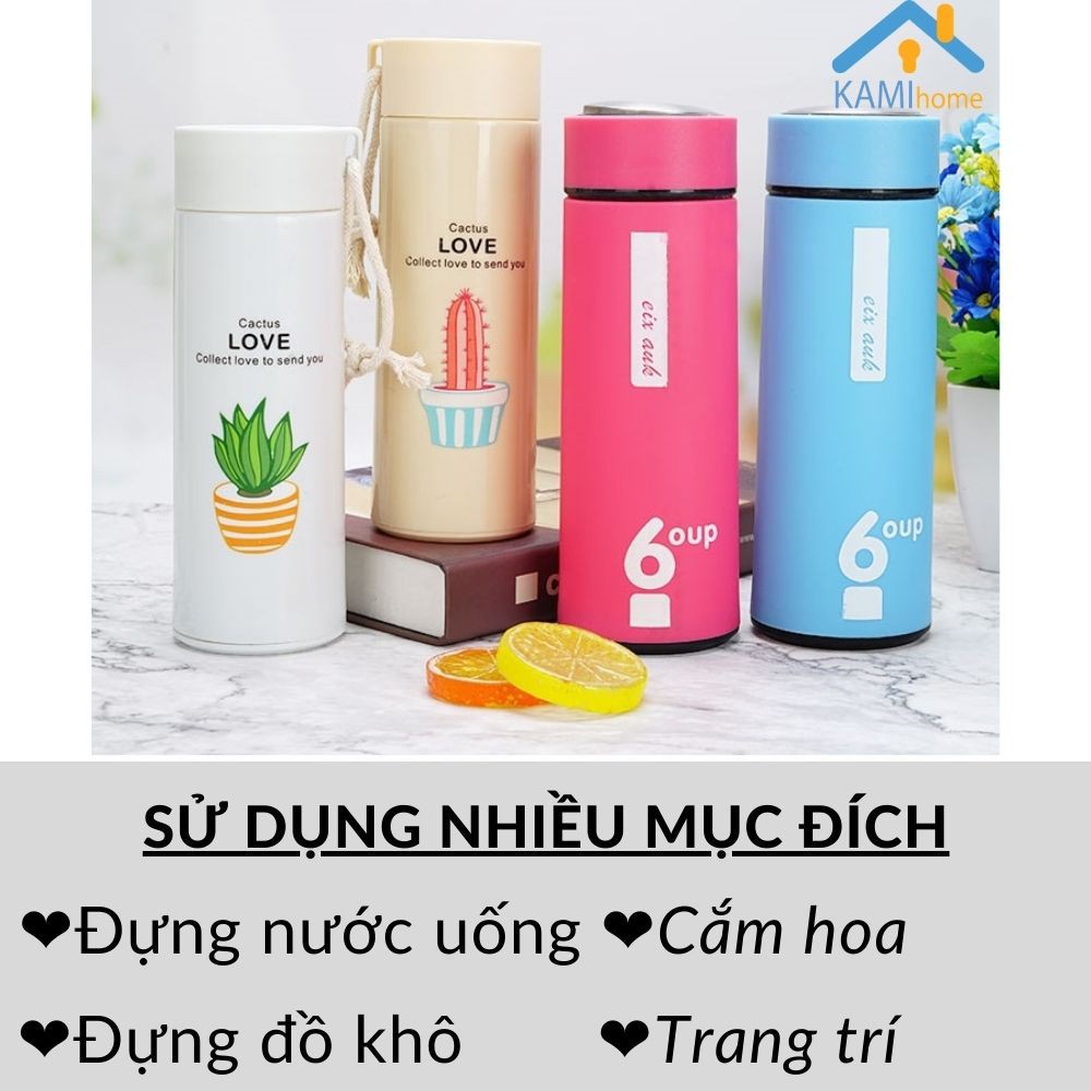 Bình nước thủy tinh VAVỏ nhựa xương rồng nắp xoay chống tràn 350m kiêm Lọ hoa dễ thương mã 20021