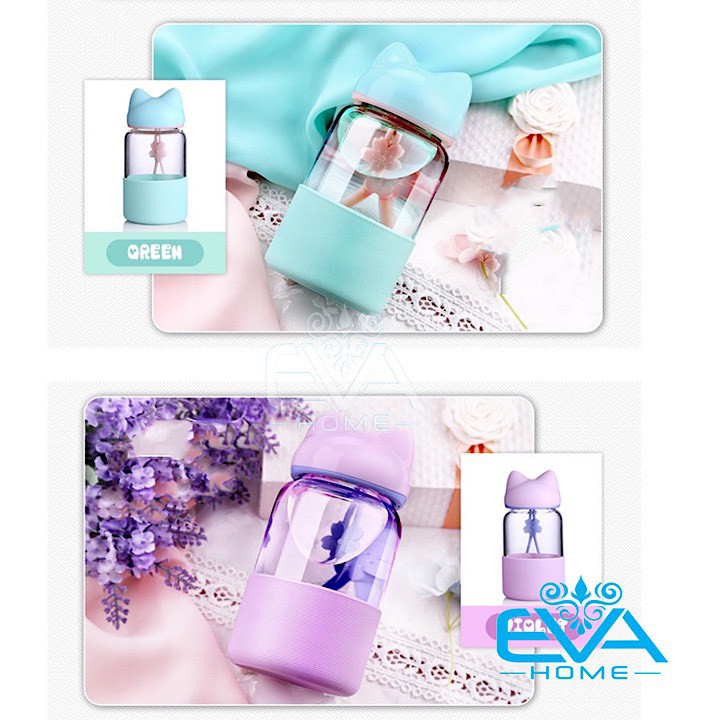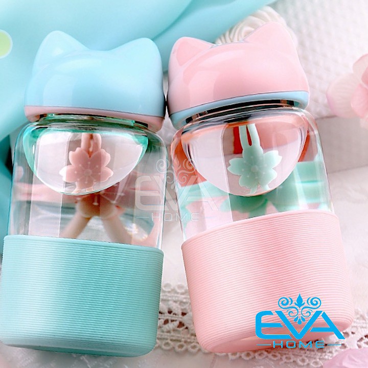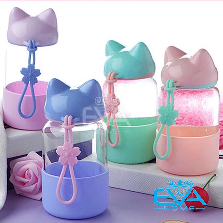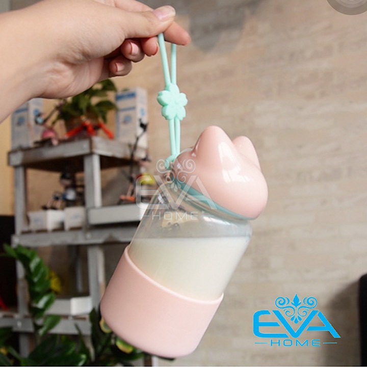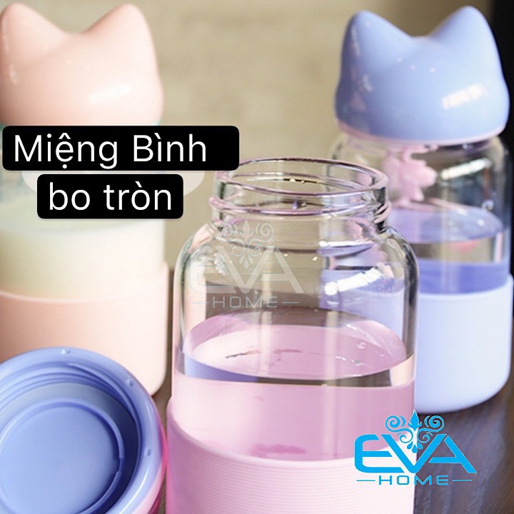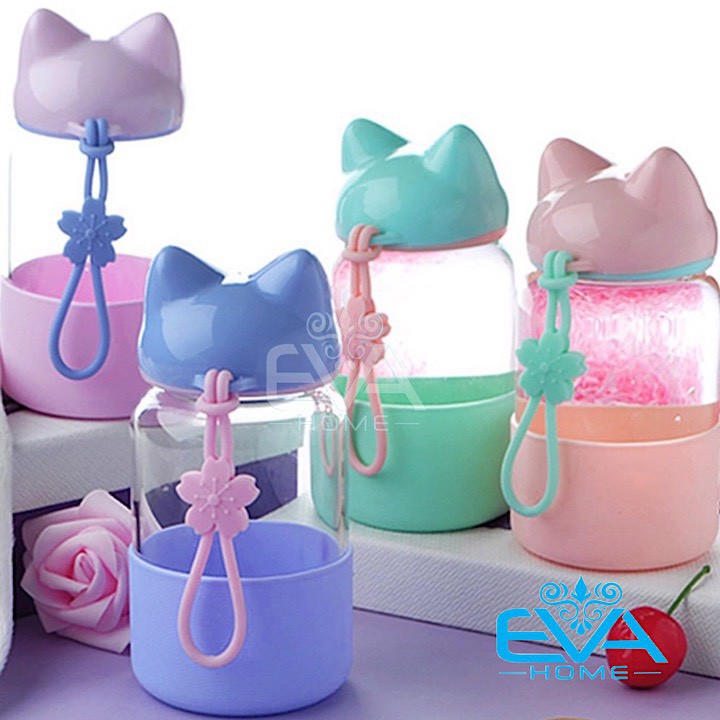 Giới thiệu Bình Nước Thuỷ Tinh Vỏ Bọc Silicon Nắp Hồ Ly Dễ Thương 300 Ml