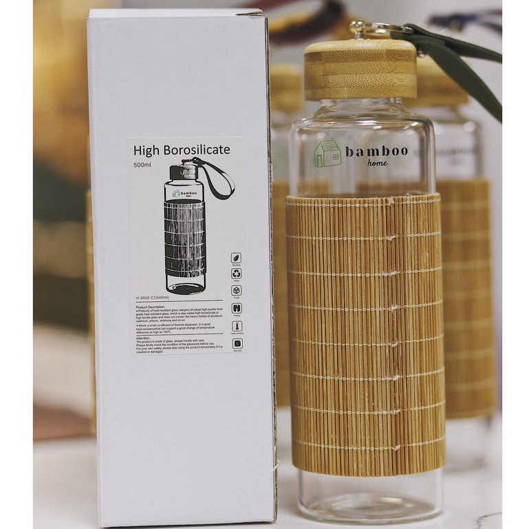 Nhà cửa & Đời sống > Bộ đồ bàn ăn > Bình nước & phụ kiện || [Mã LIFEMALL9944 giảm 50K đơn 99K] Bình nước thủy tinh vỏ tăm tre BAMBOOO ECO chịu nhiệt thời trangCòn hàng