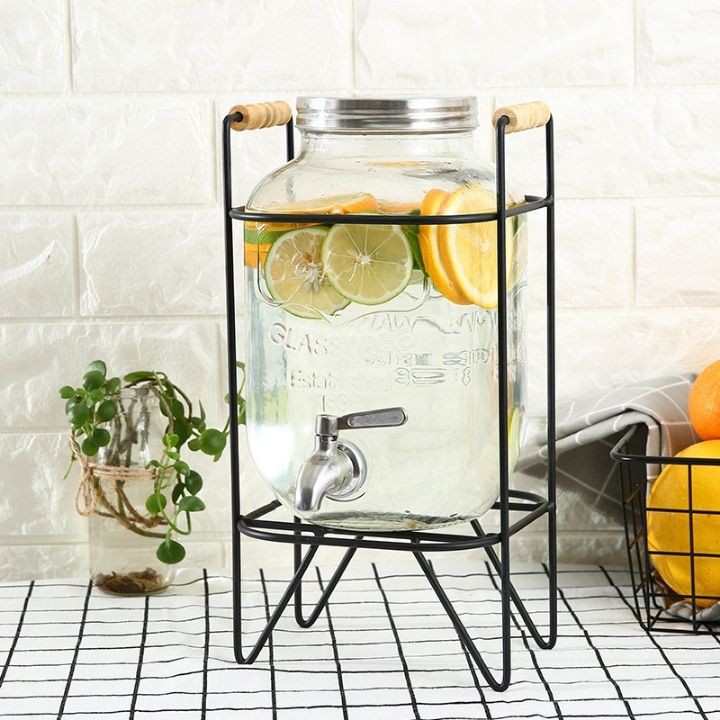 Bình nước thủy tinh VUÔNG 4L có vòi nắp vặn kín kệ sắt đựng nước nước ép detox bày bàn tủ kệ dễ vệ sinh [ RẺ VÔ ĐỊCH ]