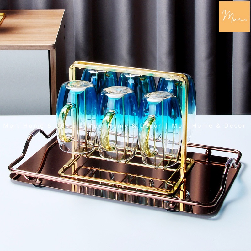 - Giá úp cốc chất liệu inox 304 mạ vàng, kèm khay hứng nước có thể tháo rời chất liệu PP