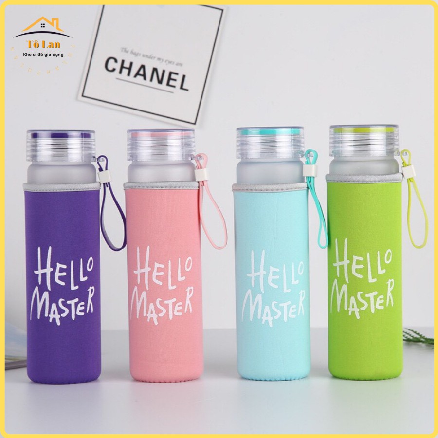 Bình Nước Thủy TinhCAM KẾT CHUẨN Dung Tích 450ml Hello Master Bình Đựng Nước Có Dây Xách ( TUYỂN SỈ )