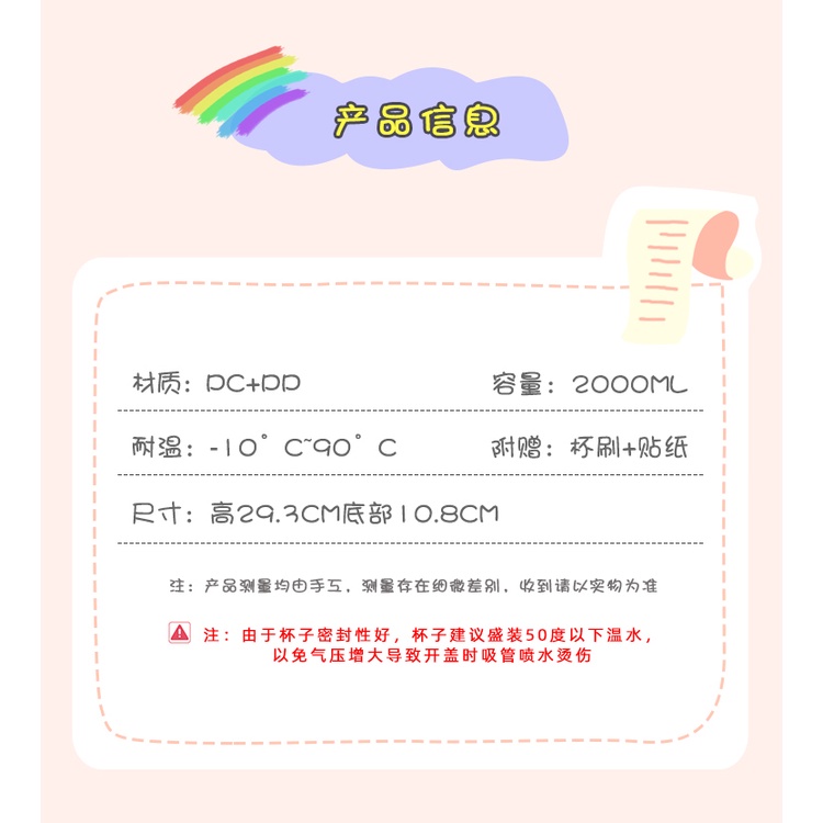1. Thông tin sản phẩm bình nước dễ thương 2l có ống hút• Dung tích lớn 2000ml thoải mái sử dụng 1 ngày dài, cung cấp đủ lượng nước cơ thể cần